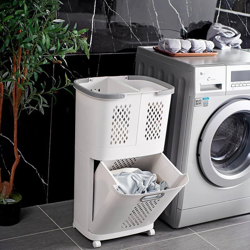 تصميم طبقي ذكي: يتكون من سلال متعددة تسمح لك بفصل الملابس (الأبيض عن الملون) بسهولة.